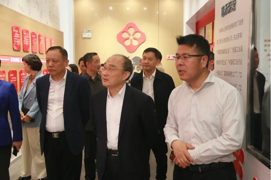 在柳新仁副總經(jīng)理的陪同和介紹下,陳振一一行詳細(xì)參觀了佳禾食品黨群服務(wù)中心,了解企業(yè)生產(chǎn)流程、產(chǎn)業(yè)結(jié)構(gòu)和新品上市推廣情況。柳新仁介紹到,隨著健康飲食理念的深入人心,植物蛋白飲品成為了行業(yè)的新風(fēng)口。為此,佳禾食品積極開(kāi)展科技創(chuàng)新和新品研發(fā),打造了以燕麥艿為代表的的植物基新產(chǎn)品,獲得了市場(chǎng)的廣泛好評(píng)。