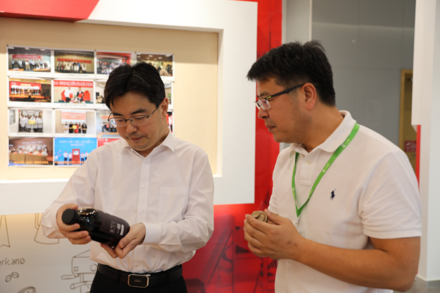 代表團(tuán)一行品嘗了公司創(chuàng)新型產(chǎn)品:冷萃咖啡、燕麥艿,大家紛紛對(duì)產(chǎn)品贊不絕口。