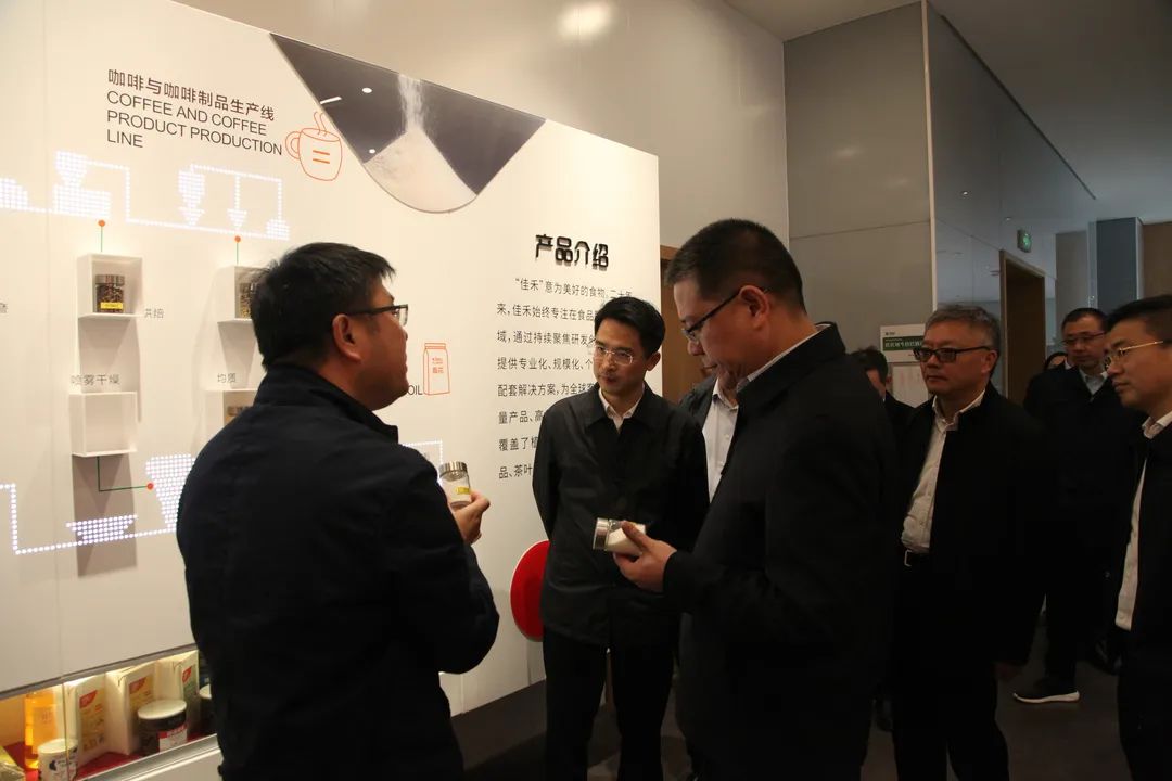 2021年11月11日,由蘇州市市委常委、副市長唐曉東帶隊,市委副秘書長祁立春、市委農(nóng)辦、住建局、文旅局、吳江區(qū)相關(guān)部門領(lǐng)導(dǎo)一起走進佳禾食品,我司常務(wù)副總裁柳新仁接待并做了相關(guān)介紹。