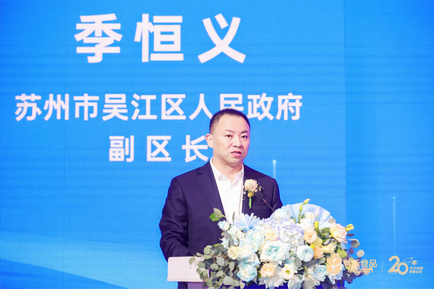 俗話說上有天堂下有蘇杭,而中間肯定就是吳江了。正是吳江的優(yōu)質(zhì)生態(tài)環(huán)境和發(fā)展環(huán)境,使得我們安心扎根吳江,實現(xiàn)更好發(fā)展,佳禾食品的每一步發(fā)展都離不開地方政府的大力支持,佳禾20周年之際,有幸邀請到蘇州市吳江區(qū)人民政府副區(qū)長季恒義來到現(xiàn)場,領(lǐng)導(dǎo)對佳禾20周年的發(fā)展成果給以充分肯定。
