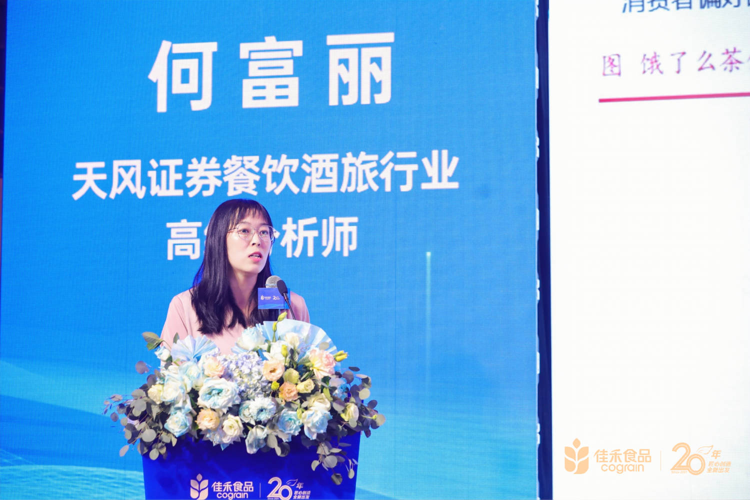 天風(fēng)證券餐飲酒旅行業(yè)高級分析師何富麗女士做了主題為——資本市場如何看待新茶飲熱潮及未來發(fā)展的報告。